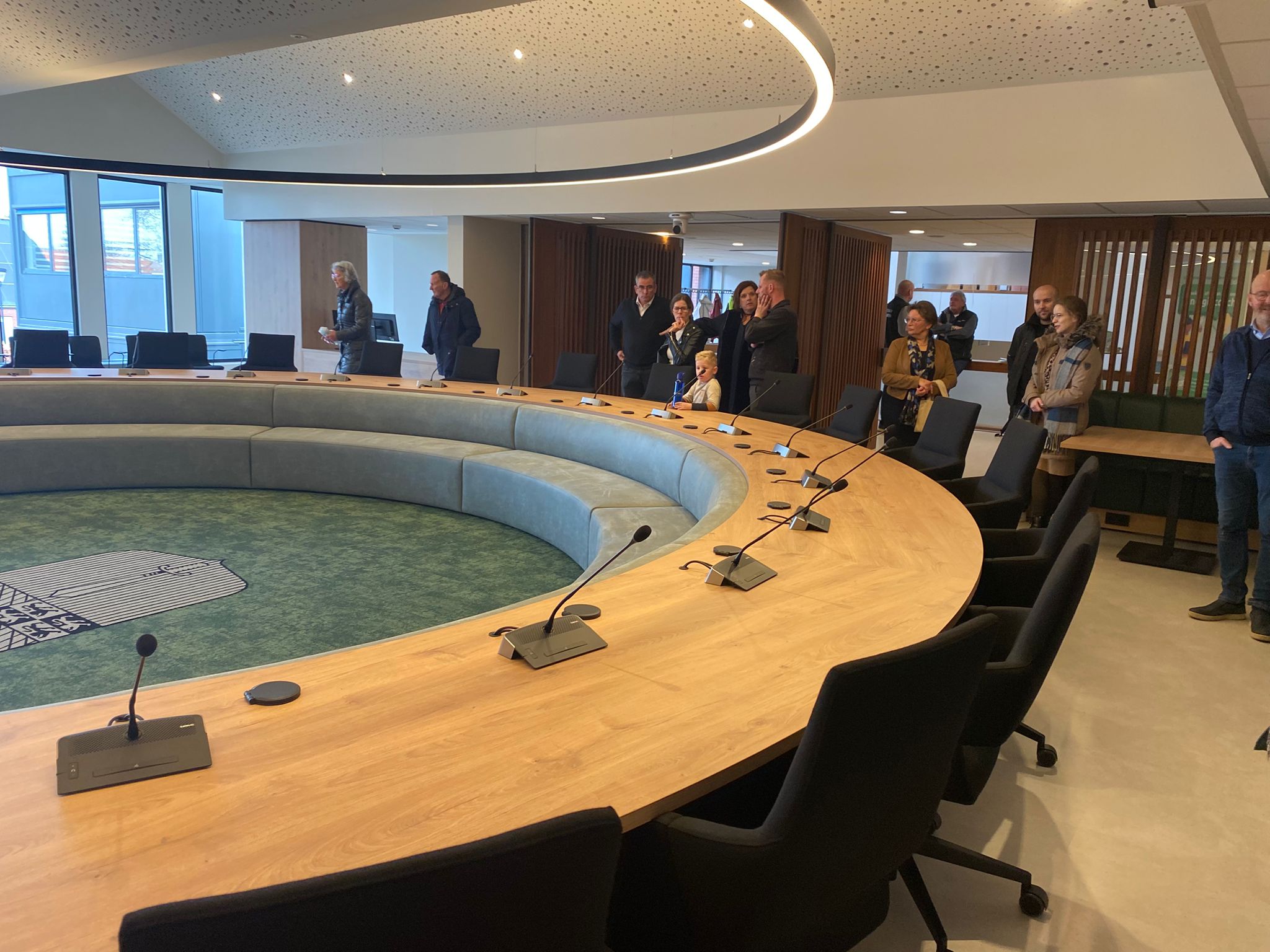 Veel bezoekers kwamen vooral uit nieuwsgierigheid naar de open dag. Een echtpaar dat de zaal bekijkt, is positief. “Geweldig. Heel mooi,” zegt de vrouw. “Een mooie combinatie van kleuren en het houtwerk. Het is heel mooi verzorgd.” Haar man vindt vooral de opstelling geslaagd. “Het ziet er zeer keurig uit. Met die ronde opstelling van de tafels vind ik het een hele goede vergaderzaal.”